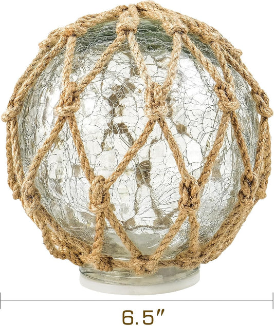 Glass Fishing Float Nautical Lamp Coastal Beach Decor Cracked Glass Ball Night Light 6"